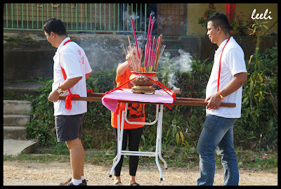 有些村民也会在家门前等候神明经过,然后上柱香。